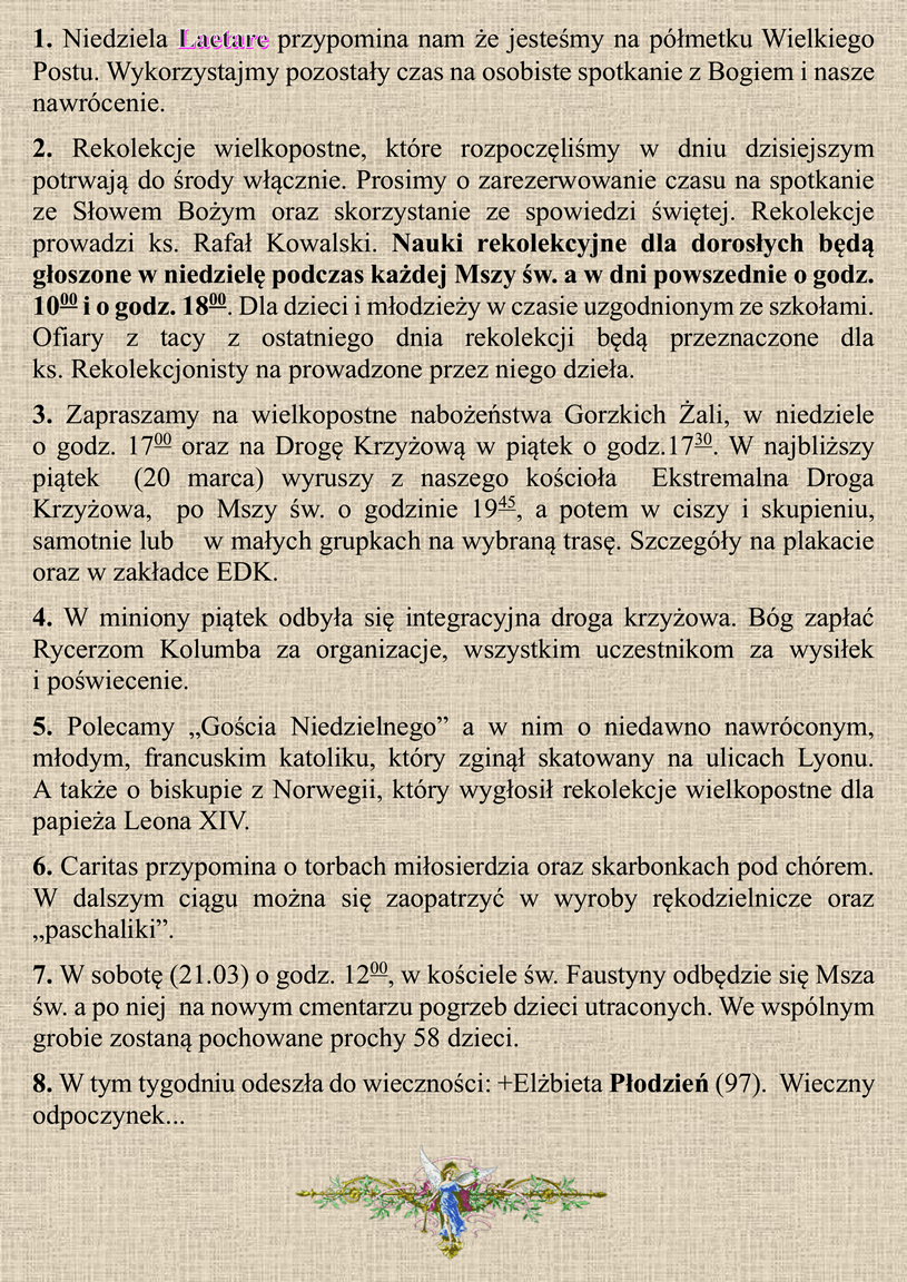 IV Niedziela Wielkiego Postu - 15.03.2026